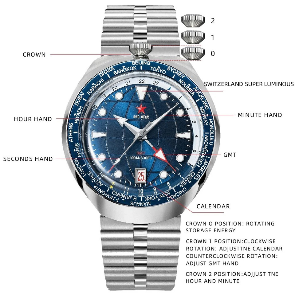 Movement: For Seiko NH34GMT automatic mechanical movement