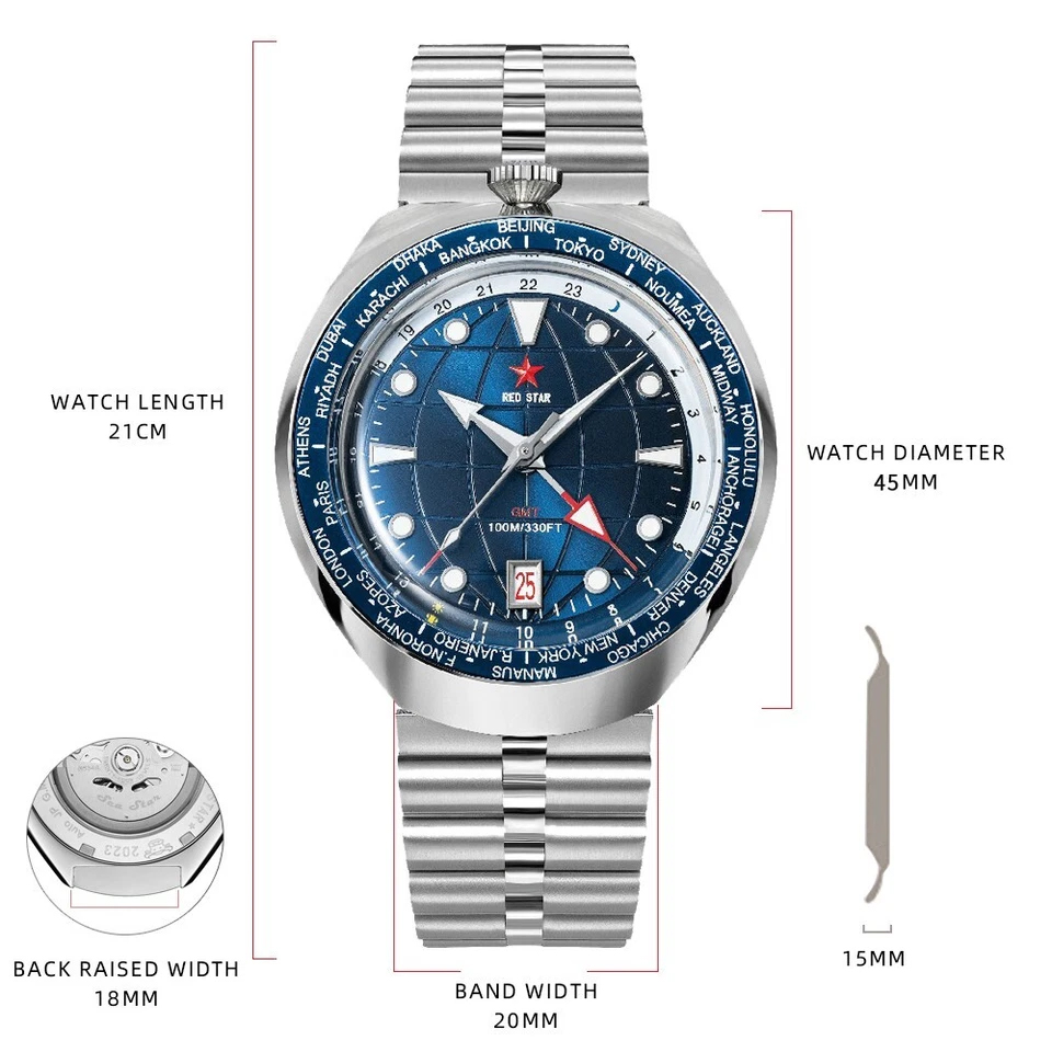 | Movement | Seiko NH34 GMT Automatic Mechanical | Case Thickness | 15mm |