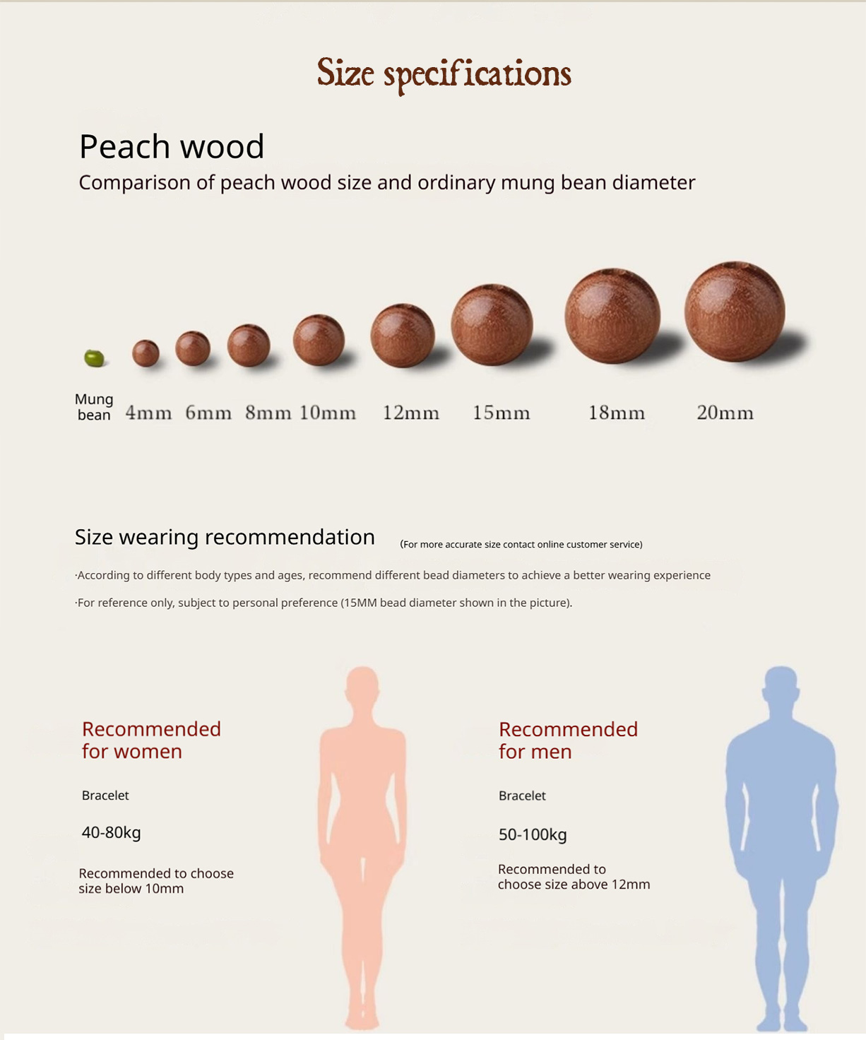 Model Meditation Prayer Beads Peach Wood Bracelet Bead diameter 6/8/10/12mm